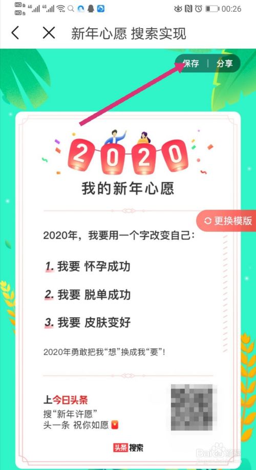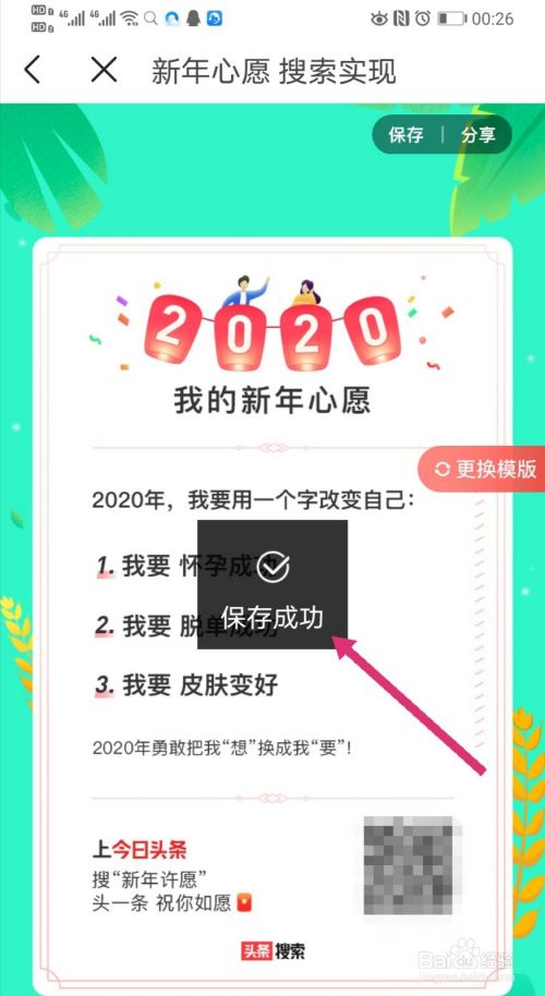 页面弹出保存成功,今日头条的新年心愿就会保存在手机内。