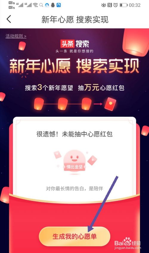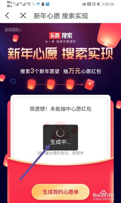 搜索三个心愿,进行红包抽取,之后点击生成我的心愿单。