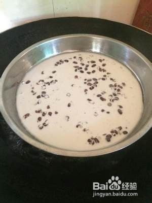 两盘粉团分别加入椰浆炼奶和凉了的黄糖水(黄糖水里的红豆拿个隔渣的东西隔了红豆出来,红豆放在椰浆糊里)搅拌均匀小黄和小白就出来了