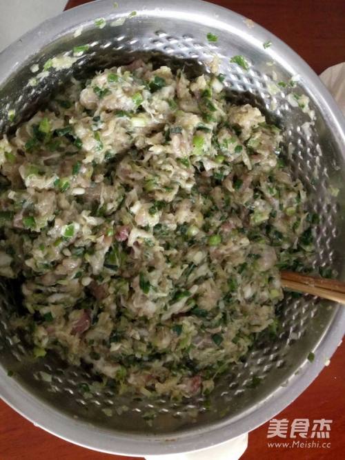 6剁好的萝卜加入葱姜末、猪肉馅(我的肉馅是事先剁好的)