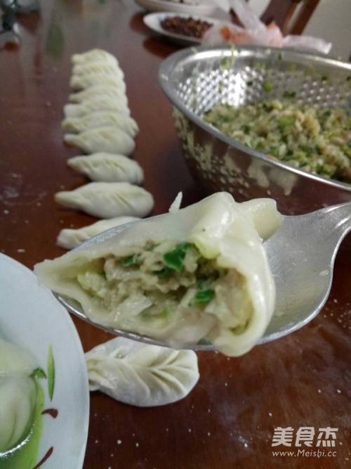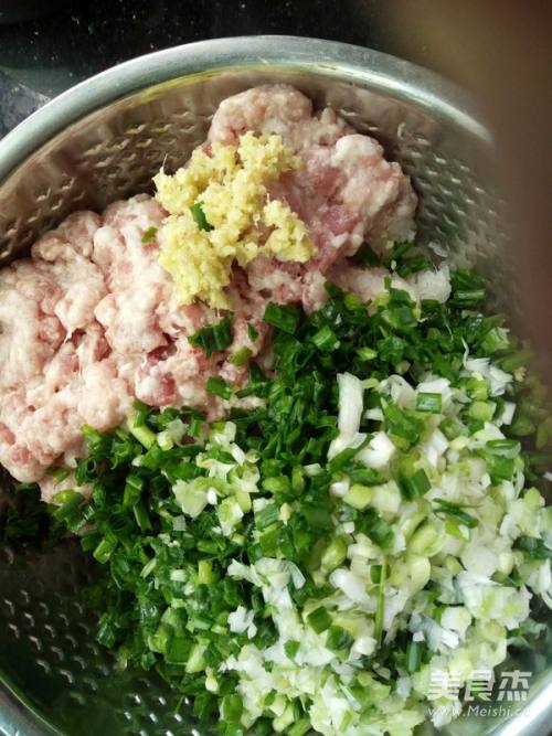 7最后加入2勺半盐、1勺味精、酱油、酒、芝麻油适量,搅拌上劲,就可以开始包了。