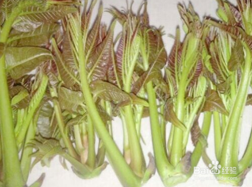 第四步,自己在家采摘香椿芽,我们在采摘的时候,一定不要伤害到香椿芽的整体的树木棵木,不要破坏到整体树木。