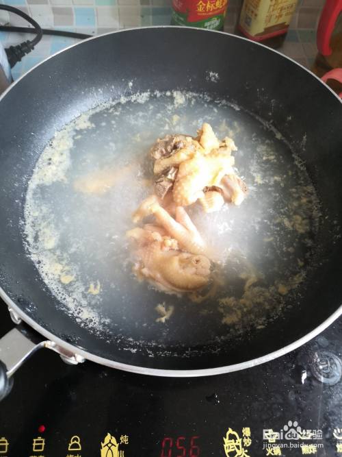 锅里装水,开大火,放鸡肉进去,盖上盖子,水沸腾后,看到鸡肉散开就可以关火。倒掉污水,然后用干净的水清洗下鸡肉。