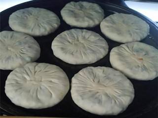 放入馅料,收口,压扁。