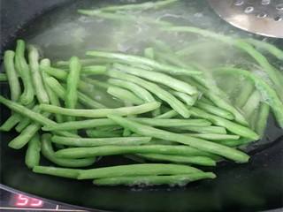 芸豆角清洗干净,放入开水中,焯熟。