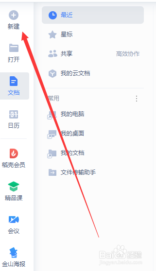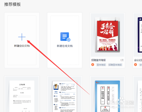 在页面上方菜单栏选项中选择新建选项,创建空白文档