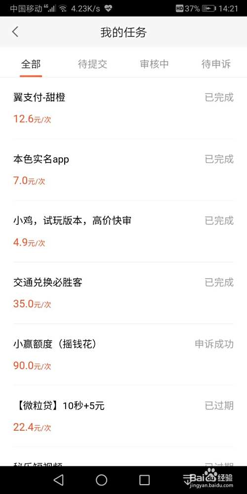 做完任务之后提交,等待审核,审核完成钱就到账了。如图是我完成的任务。