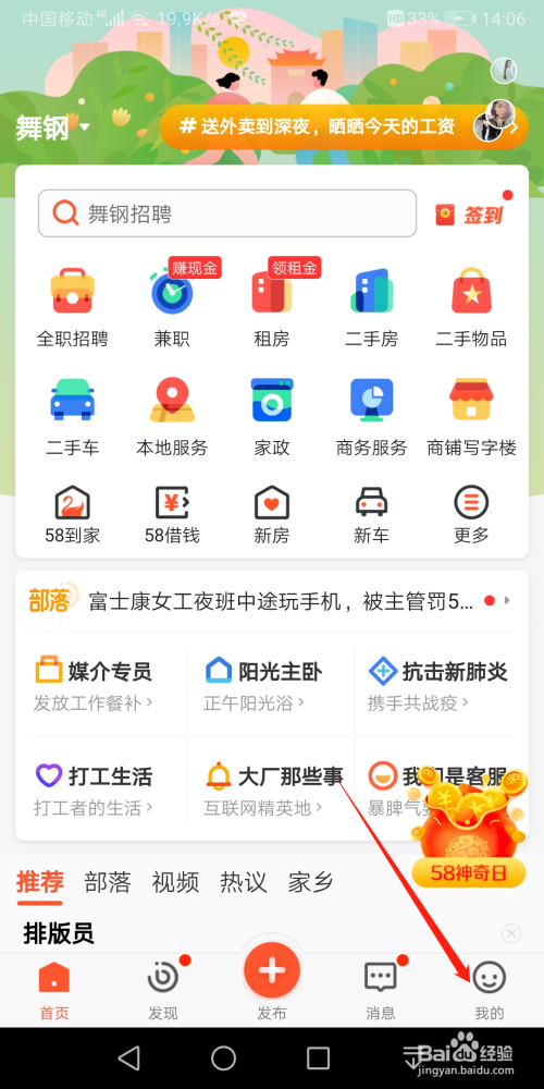 打开58同城APP,打开我的,如图。