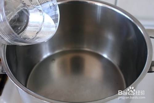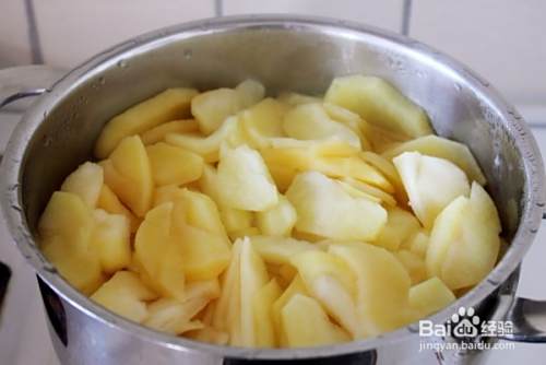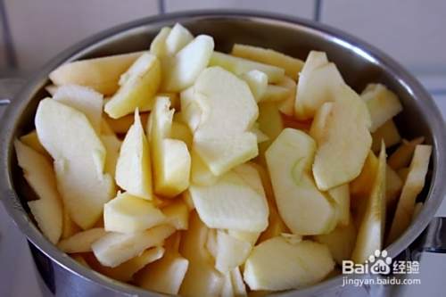 取一不銹钢锅,倒入一点点水,覆盖锅底就可。 注:加水的目的是为了防止在苹果出水前锅就干了。