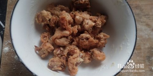 锅内适量油,烧至七成热,加一粒粘好面粉的花生米试试油温,花生米周围迅速起小泡表明油温足够,倒入所有的花生米,小火慢慢炸至金黄。
