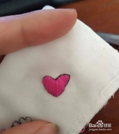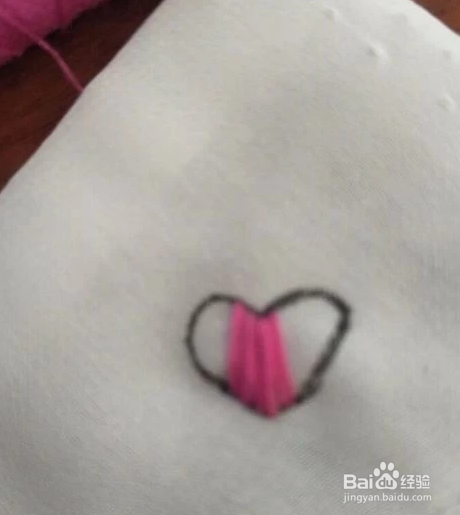 然后再跟着画出的轮廓,两边对称着绣,一点点的绣,如图所示。。