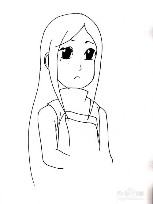 最后,画出双手和衣服细节,自行涂色即可。