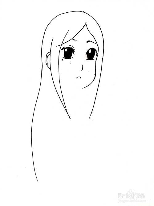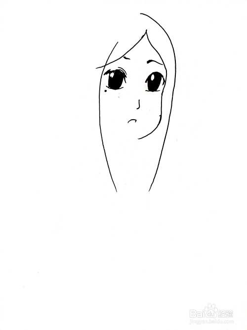 然后,确定脸部轮廓,画出鬓发。