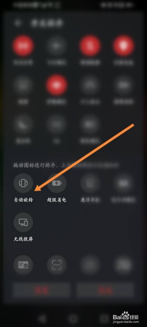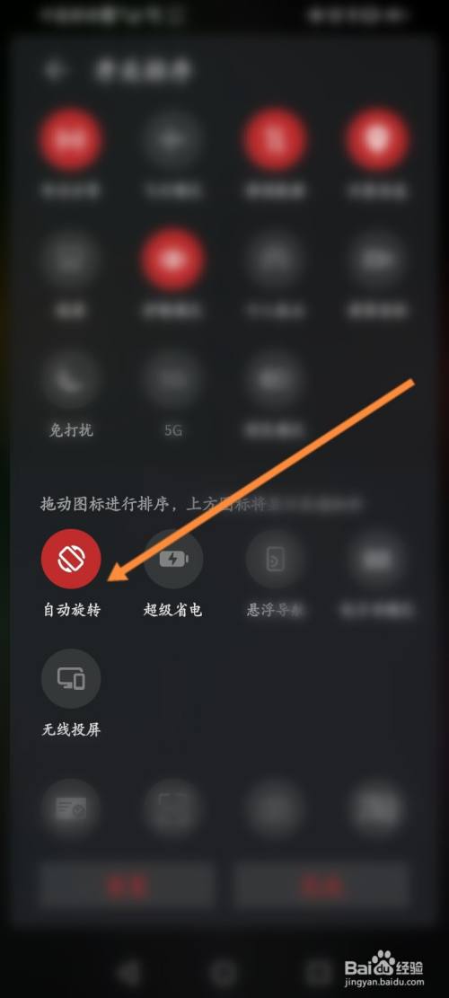 自动旋转呈现红色,表示已经开启了自动旋转功能。
