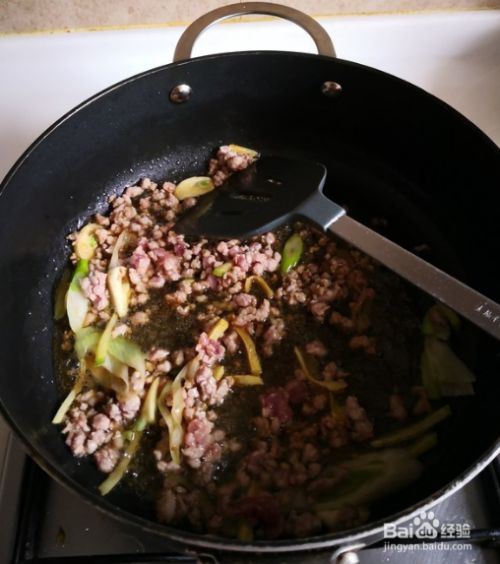 加入肉馅,添加料酒,十三香。