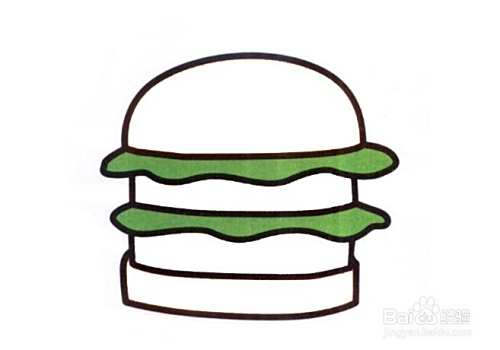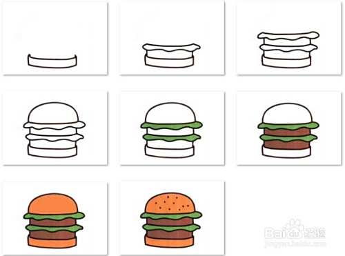儿童彩色简笔画-彩色汉堡包的简笔画法。