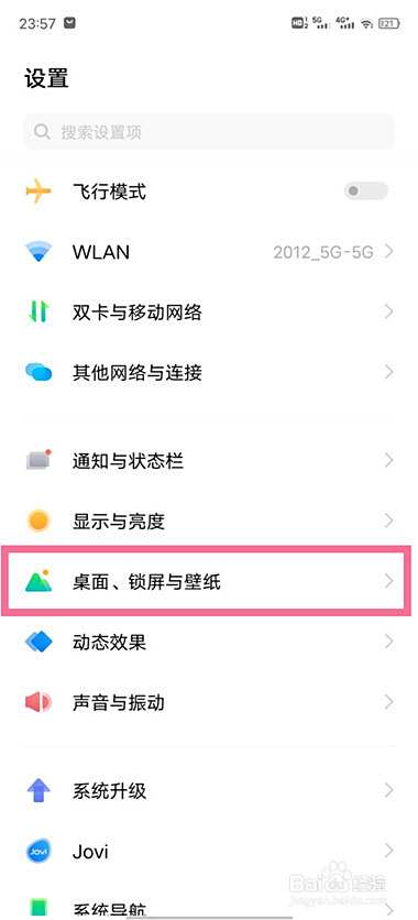 1、在手机设置菜单中点击【桌面、锁屏与壁纸】。