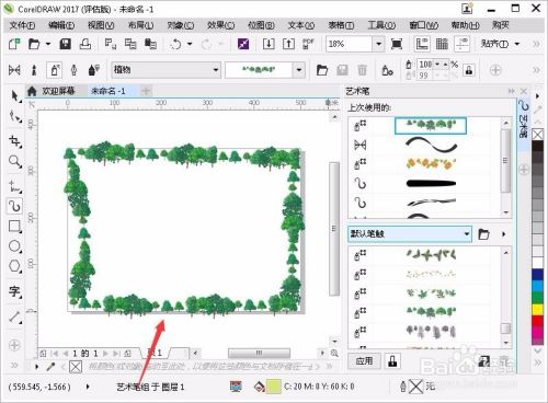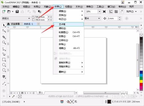 新建完成以后,在菜单栏选择效果>艺术笔。