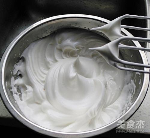 2分蛋,蛋清分3次加入60克白糖打发至干性发泡