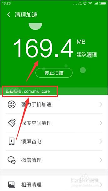 然后360卫士会扫描手机各种软件的垃圾,扫描时间越久垃圾就越多,上面显示垃圾占用内存的数字会变得越来越大。