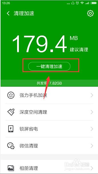 扫描完成之后垃圾的总内存占有会显示在页面中,点击“一键清理加速”清理扫描的垃圾