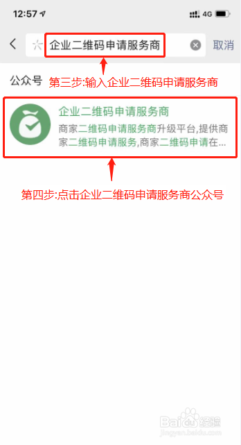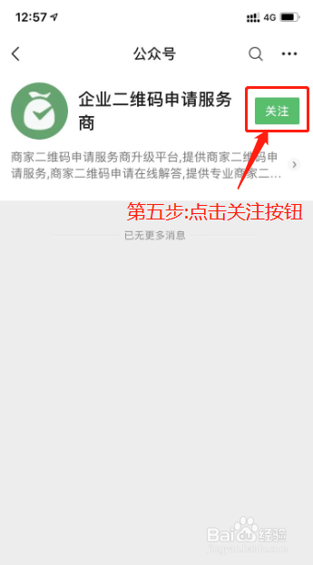 第五步:点击 关注按钮“企业二维码申请服务商”