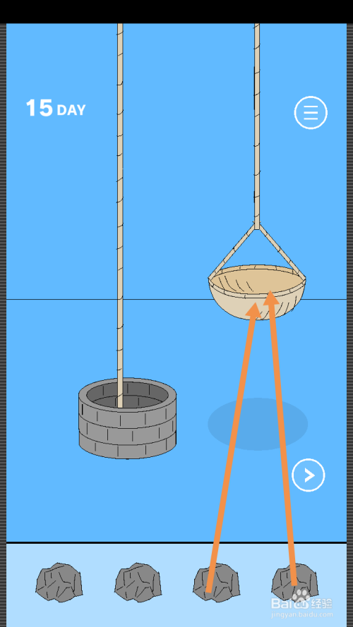 在右边房间里,点击四块石头,然后点击向左箭头,进入左边的房间。