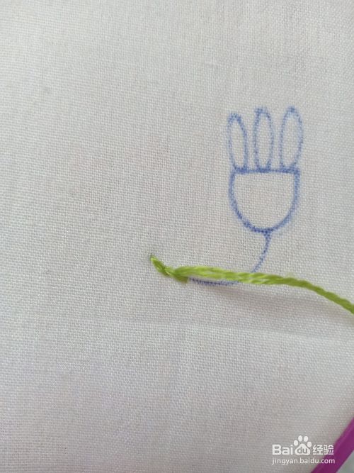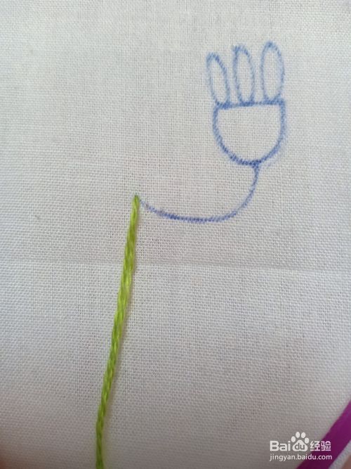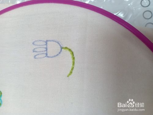 接下来,我们取出针线,用绿色的线先从枝干绣起。