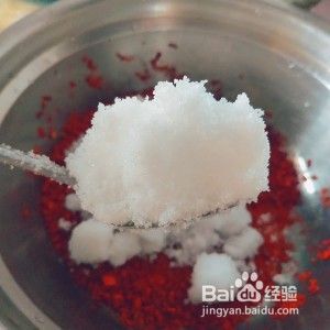 不辣的无子辣椒面一两,白糖像图中满满四大勺,味精一小勺(调料盒里的勺)