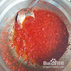 烧开的水倒辣椒面里,基本1:1就可以。水不要太多,只要能把糖化开就可以