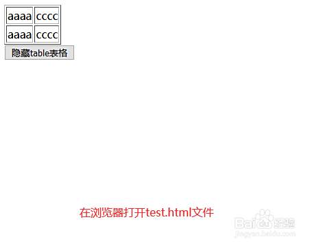 在test.html文件内,创建一个button按钮,给button绑定onclick点击事件,当按钮被点击时,执行hidetable()函数。
