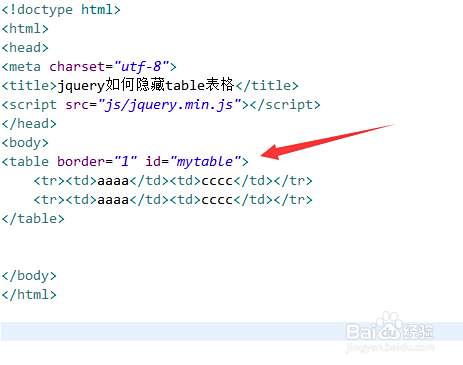 新建一个html文件,命名为test.html,用于讲解jquery如何隐藏table表格。