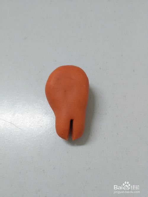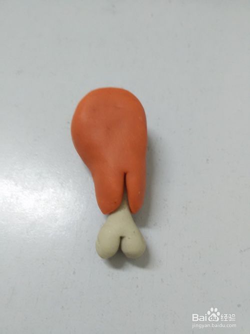 用将桔色彩泥捏成一个大大的水滴形状,当作鸡腿肉。