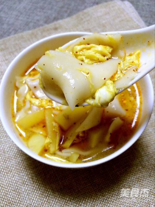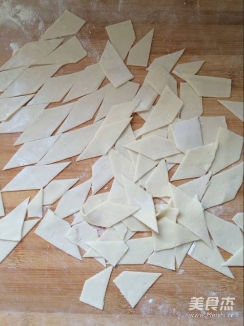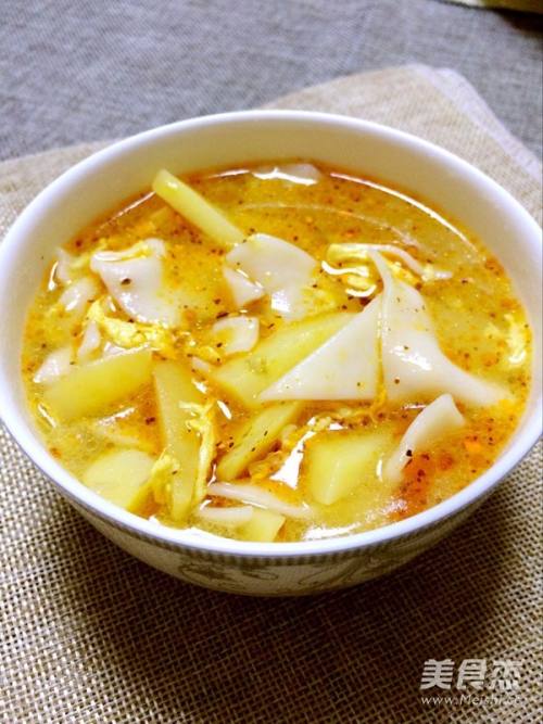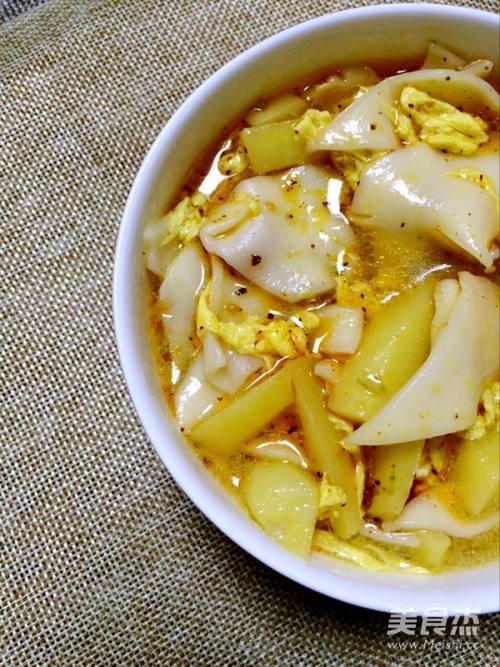 1面片备好,土豆切成长条,鸡蛋打散备用