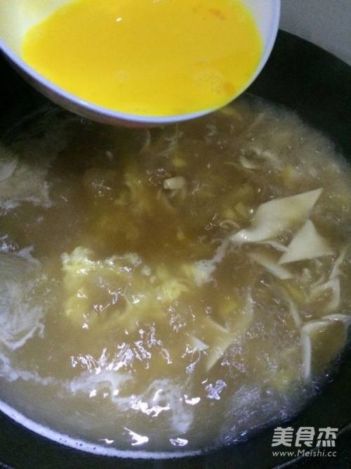 6最后加入打散的鸡蛋液,搅拌匀即可出锅