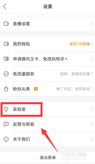 进入设置界面后下拉即可找到实验室。