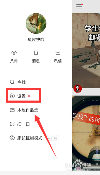 在弹出的选项中点击【设置】。