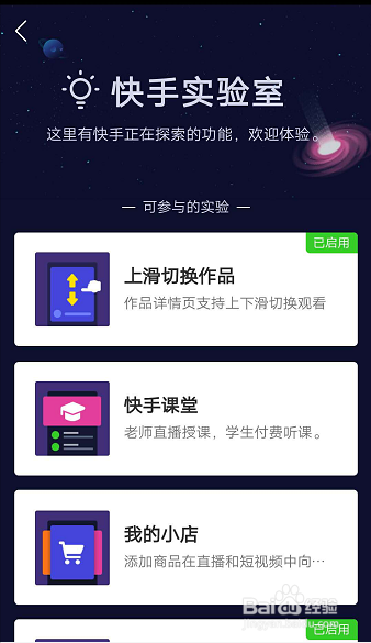 实验室中有许多功能需要我们手动开启,例如上滑切换作品。