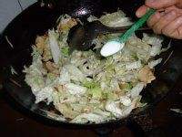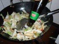 放葱 红椒 葱 青椒炒一下;放白菜后爆炒
