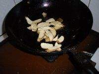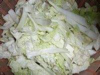 白菜切成丝;在油锅里炒豆肠