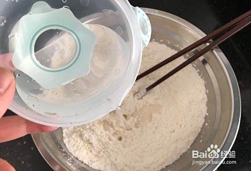 加入清水,慢慢分多次加入,视面粉吸水量适当增减