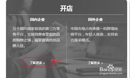 然后在开店的界面里面,选择国内企业,点击了解更多。