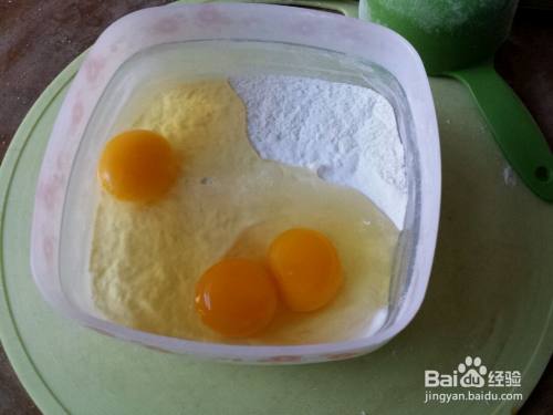 打入鸡蛋,喜欢鸡蛋的可以用三个,不太喜欢可以用两个。不用加水!不用加水!不用加水!(重要的事情说三遍!)