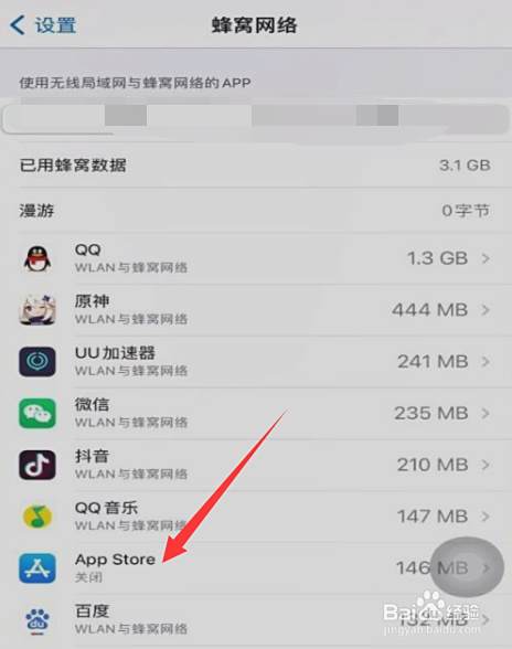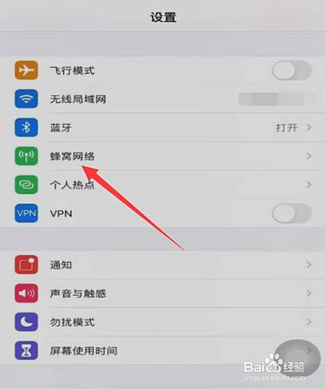 打开手机设置界面,点击下方的蜂窝网络按钮进入。