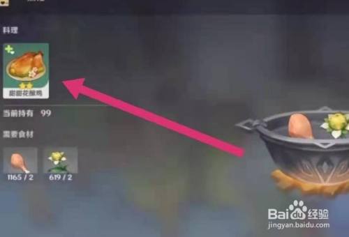首先在烹饪界面选择甜甜花酿鸡这个食谱