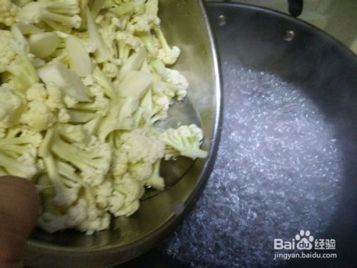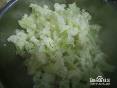 首先准备好所需食材,将花菜洗净掰成小块,开水下锅。