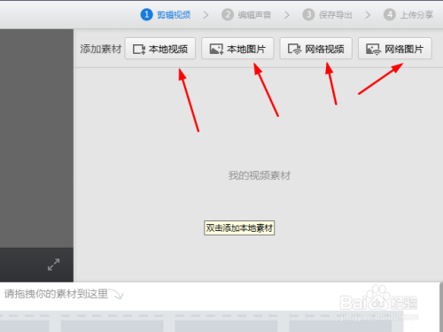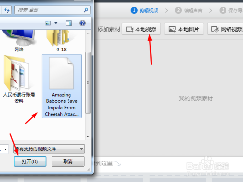 3点击【本地视频】选择本地视频文件,点击打开完成视频的导入。同样的方法可以导入图片。