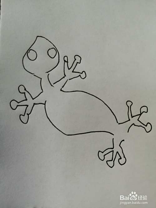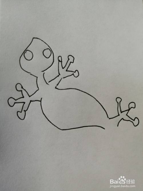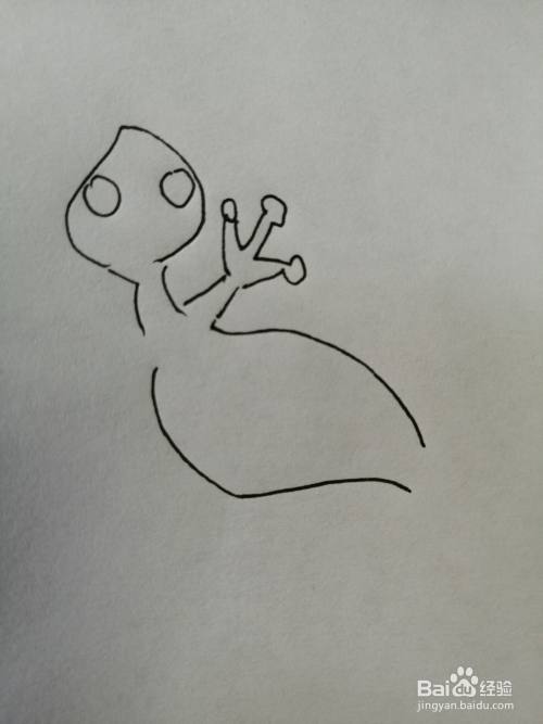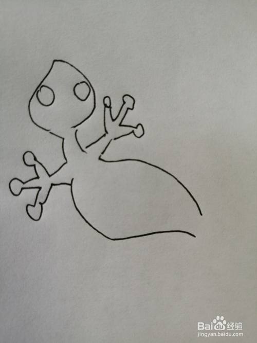 3第三步,然后继续画出可爱的小蜥蜴的身体,注意身体轮廓的画法。
