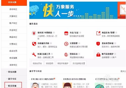 登录淘宝商家帐号,选择如下图位置的,找到联系客服-卖家客服。