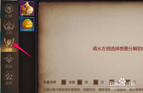 把多余的、幻兽等级低的可以拿去分解,分解获得幻兽技能升级的材料哦。